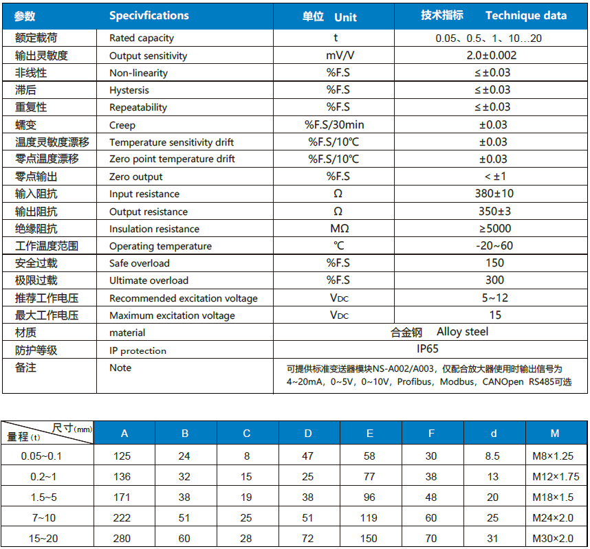 NS-TH1 系列稱重傳感器具有過(guò)載保護(hù)裝置;